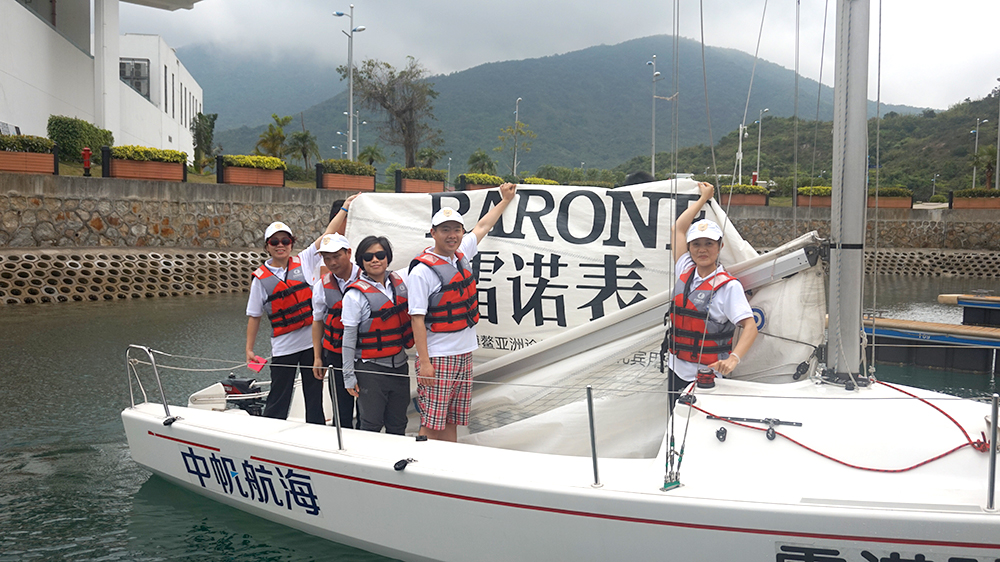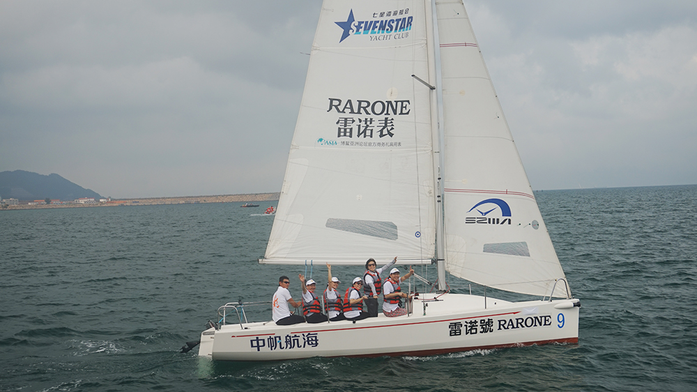 下午,海面迎來微涼的海風(fēng),令人心情開朗。開闊的海面,清綠的海水,飽滿的士氣,雷諾團(tuán)隊(duì)揚(yáng)起專屬雷諾表的“雷諾號”帆船。雷諾表董事長詹西洲先生親自率領(lǐng)雷諾團(tuán)隊(duì)一同登上“雷諾號”,在海面上開始了與其他深圳鐘表品牌的帆船友誼賽。