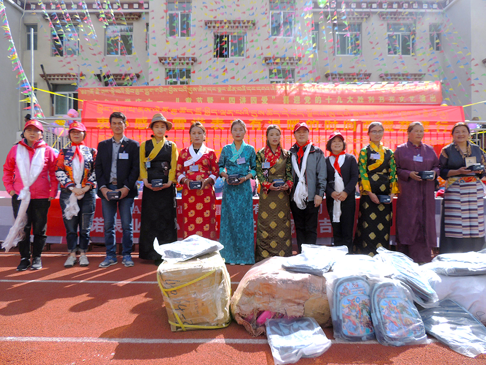 雷諾表業總經理詹江洲先生攜團隊遠赴邊疆,走進西藏波密縣多吉鄉小學,提前和邊疆的孩子們歡度節日,為邊疆的小朋友們送去了祝福和溫暖,孩子們以當地具有民族特色的非遺歌舞-帕雄熱巴舞迎接遠道而來的客人。